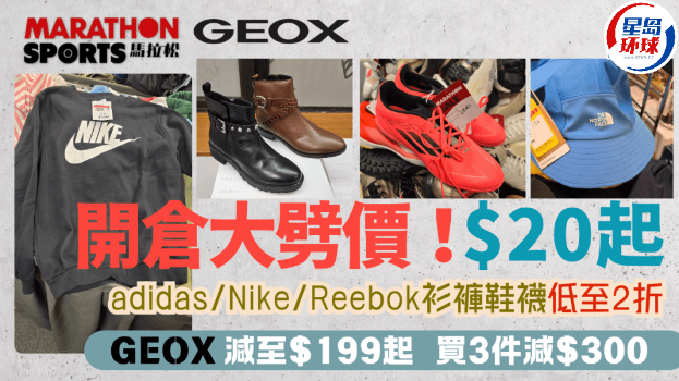 马拉松/GEOX尖沙咀海港城开仓 2折起低至$20及$199 买2件以上额外有折