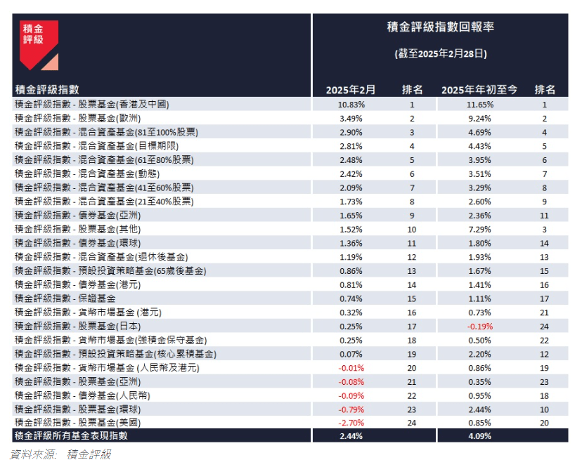 ▲按资产类别划分,“积金评级指数”截至2025年2月28日的回报表现