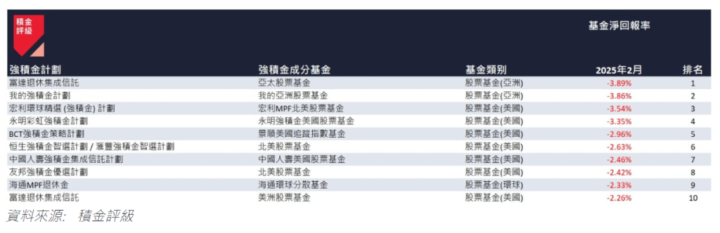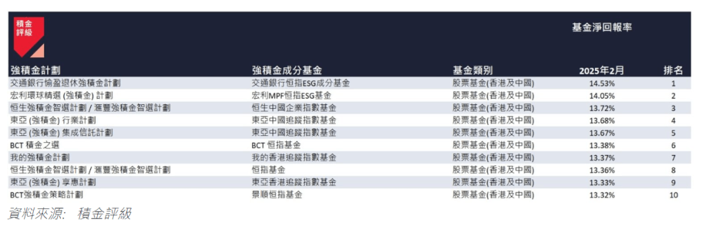 ▲2025年2月表现最佳的10只强积金成分基金
