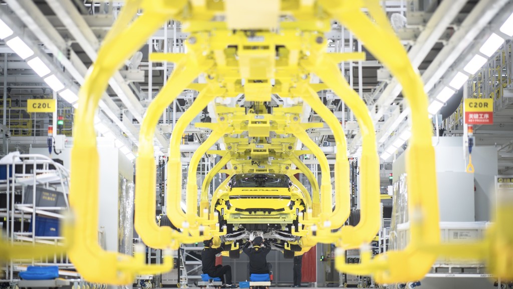 ▲中国经济向好高质量发展扎实推进。图为湖北武汉经开区智能网联和电动汽车产业园的路特斯全球智能工厂一角。新华社