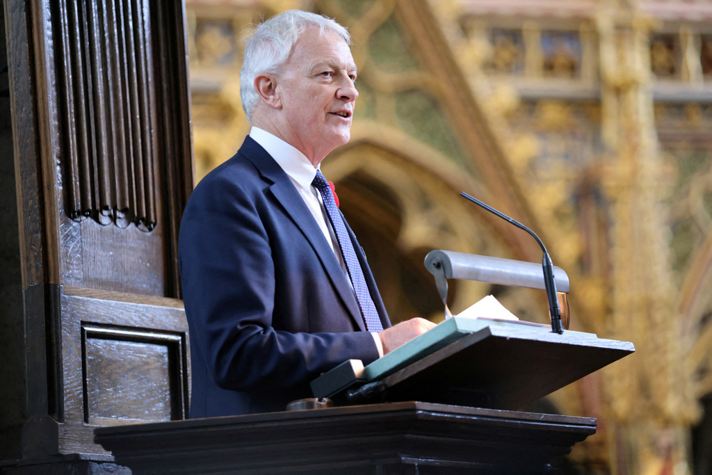 ▲新西兰驻英国高级专员(驻英大使)高夫4日在伦敦公开场合暗指美国总统特朗普不懂历史,遭外交部火速拔官。图为高夫2024年4月在伦敦西敏寺活动留影。(资料照/路透)
