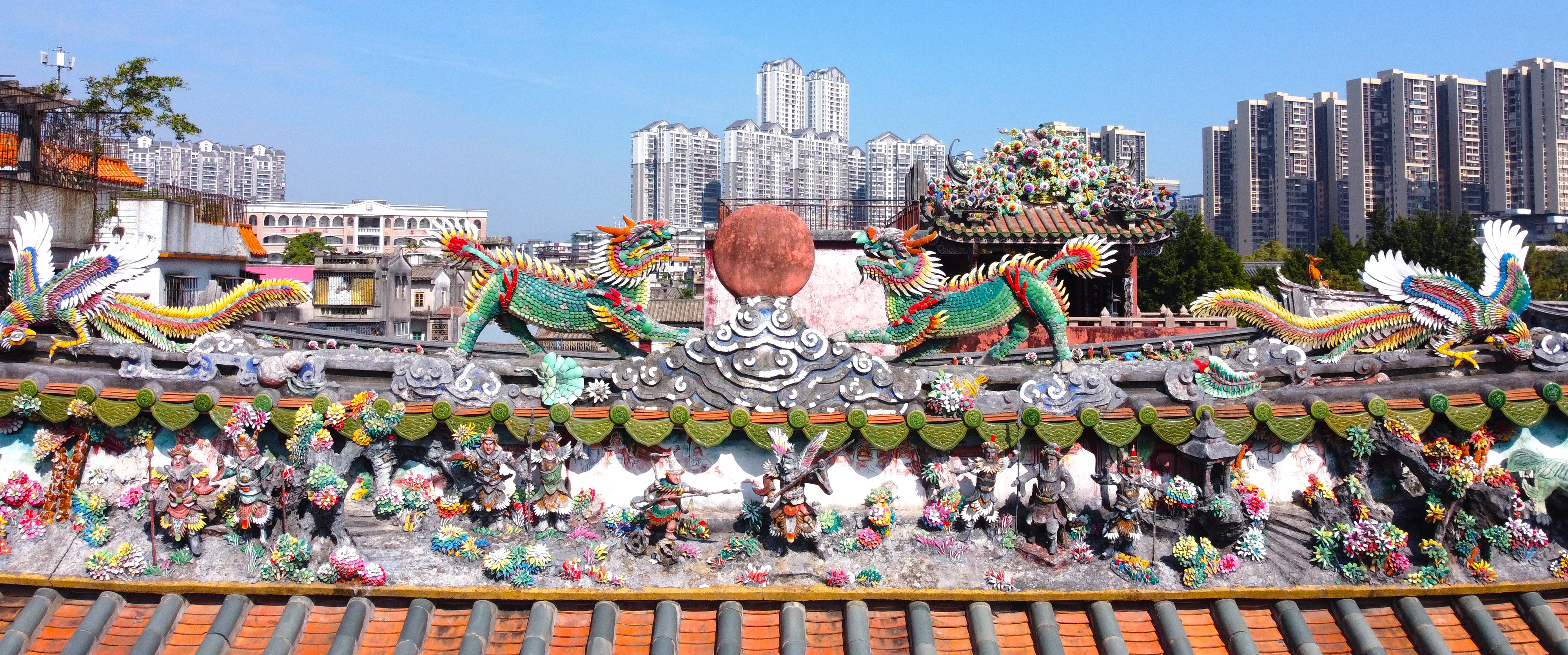漫步寻访在广东揭阳的古街古巷,目光很难不被屋顶上一件件缤纷的装饰物所吸引——它们色彩绚丽夺目,造型栩栩如生,题材从飞禽走兽到花鸟虫鱼再到神话人物,几乎无所不有,这便是大名鼎鼎的嵌瓷。