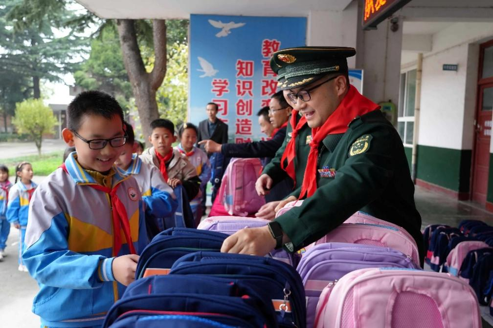孩子们天真烂漫,他们情感真挚热烈,从不加以掩饰。“以前,有些同学的书包已经破旧了,冬天写字时手也会冻得通红。现在有了新书包和新手套。我们上学更加开心了,写字时手也暖暖的。”郑宝宝手机相片里孩子们写给支队战士们的这封来信,笔画虽然稚嫩,却写出了最动人的话语。
