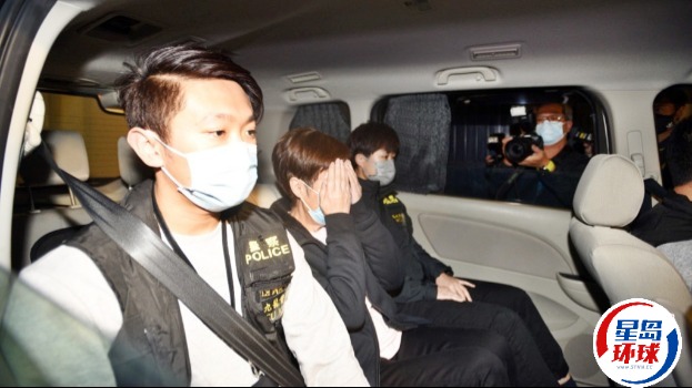 ▲其中一名女被告(掩面)案发被警方带署调查。资料图片