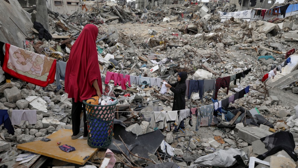 ▲流离失所的加沙人在废墟中迎接穆斯林斋月。 美联社
