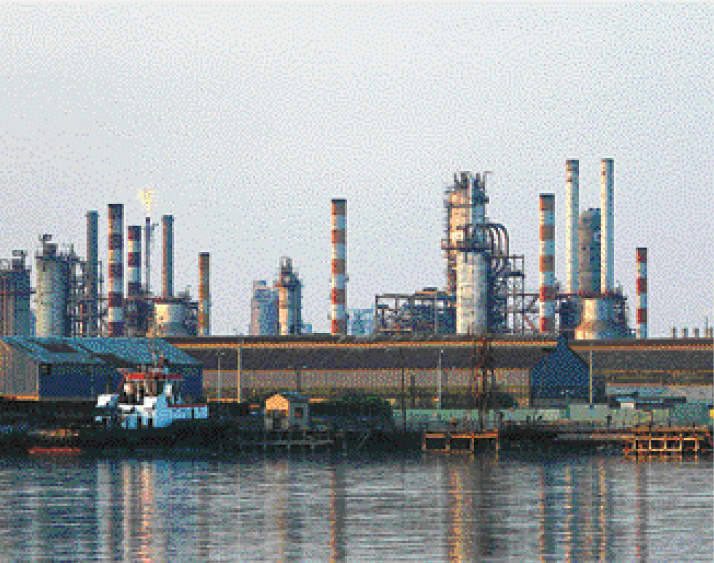 ▲图为伊朗西南部阿巴丹炼油厂全景。