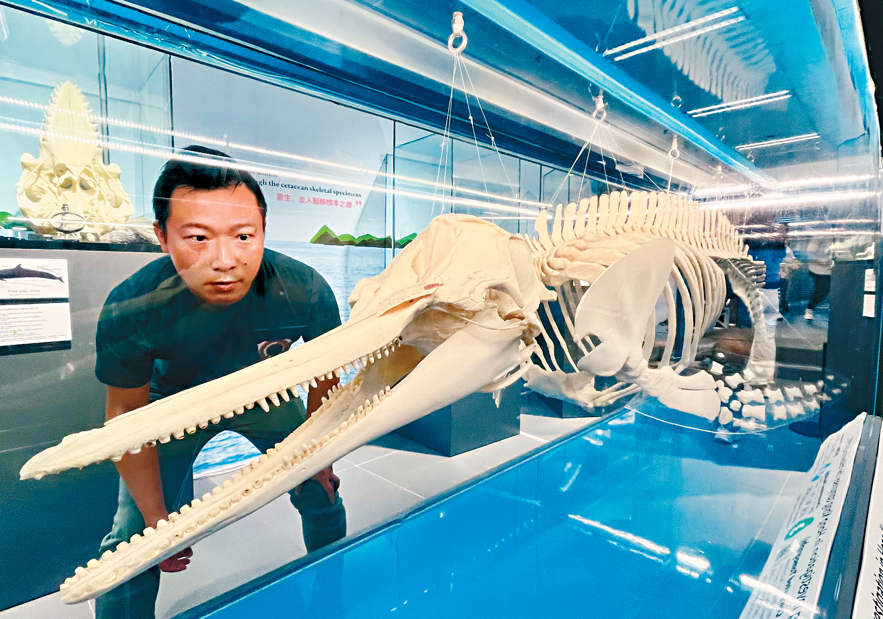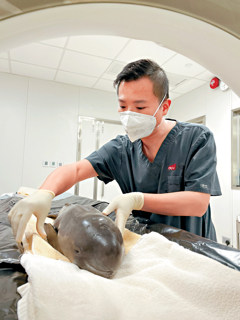 葛展荣是城大传染病及公共 生学系助理教授,亦于城大化学系有教席,近日研究组于城大校园举办“鲸龟大海:海洋居民的故事”展览,总结10年工作。作为研究组的创办人,他指海洋垃圾、环境污染、渔业误捕,都对海洋动物构成不同威胁,影像解剖有助掌握鲸豚的健康状况,其团队曾于江豚宝宝体内发现寄生虫,怀疑经母体感染,再揭发母豚因进食长有寄生虫鱼类而感染,传染下一代,事件牵涉整个食物链,不容忽视。