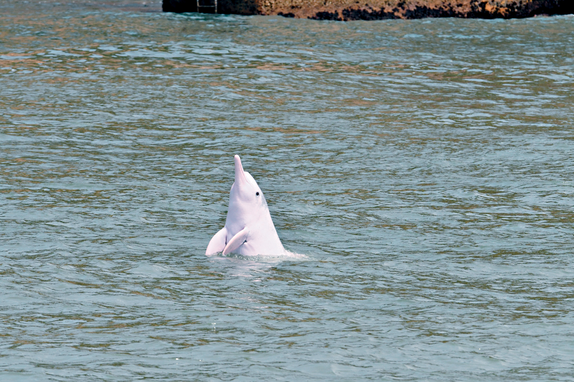 ▲编号“HK004”的中华白海豚活跃于大澳海面。