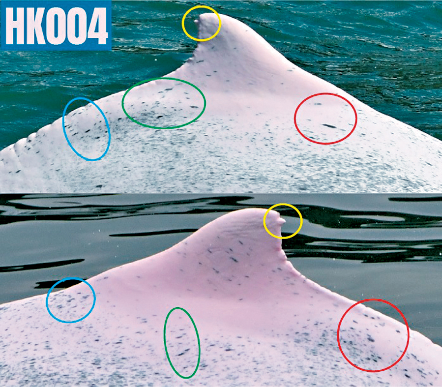 去年底,渔护署于大屿山海面发现1具白海豚尸体,研究组怀疑该白海豚的外形,与1条观察多年的雌性白海豚近似,其后翻查鲸豚“医健通”,发现两豚的背鳍及其他身体外观特征 合,终确认是同1条白海豚。葛展荣当时身在海外,得悉事故后十分伤感,形容是“痛失老朋友”。他指,该白海豚的编号为“HK004”,过去5年内观察到逾20次,一直健康及活跃,对上一次观察是去年5月,岂料7个月后竟陈尸海上。