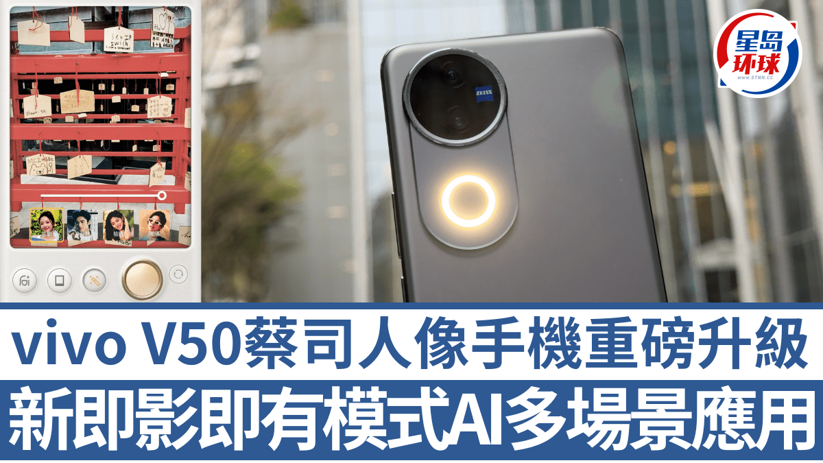 近年vivo V系列中阶手机凭蔡司人像及AI柔光环2大功能,赢得不少钟情人像拍摄的用户青睐。 日前推出的新成员V50又有突破,首度加入菲林相机模式,可自订多种色调风格,配合不同相纸特效,模仿出即影即有的拍摄乐趣,加上今代引入大热的生成式AI功能,影拍以外,整体表现更为全面。