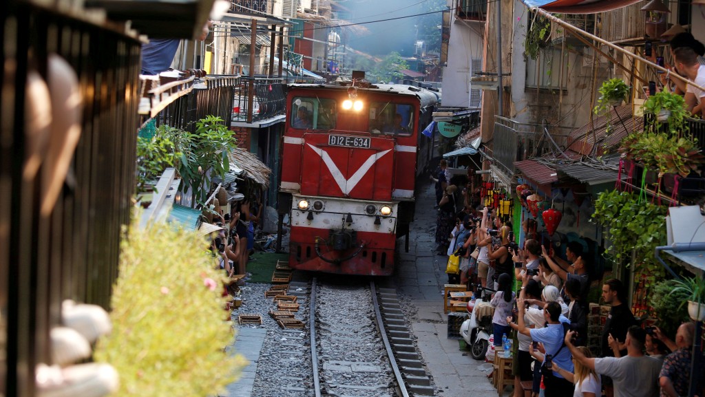 越南首都河内的火车街是当地著名景点之一,游客对铁路线直接穿过密集居民楼的场景相当有兴趣,然而人群太靠近火车及路轨引发安全疑虑。 河内旅游局要求旅行社不要宣传火车街观光团或接载游客前往。