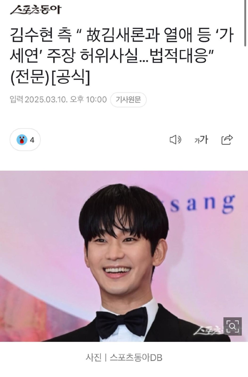 不过,其后金秀贤所属公司就发出声明澄清:“对于有消息称本公司和演员金秀贤与 YouTuber李镇浩勾结,折磨了已故演员金赛纶、声称已故的金赛纶演员从15岁起就与演员金秀贤恋爱、声称已故演员金赛纶在酒后驾车事故后经纪公司处理不正当,本公司所属经纪人与 YouTuber李镇浩有关係等,对本公司和演员金秀贤提出了众多的恶意主张,但这些都是无法默许的虚假事实,本公司将审查虚假散布事实可以採取的最强有力的法律对策。”此外,金赛纶的家人近日发声指金秀贤曾为金赛纶垫付约350万港元债务,但后续追讨还款的行为却成为压垮金赛纶心理防线的关键因素,故现已向首尔警方提交诉状,要求对李镇浩、金秀贤及冬至美电影导演等人追究法律责任。