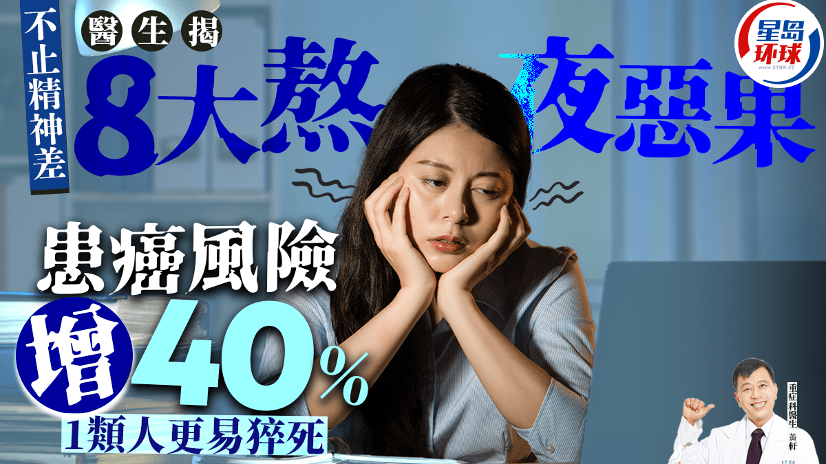 不少港人都有熬夜习惯,不过经常熬夜不止会令精神转差。 有医生指出,熬夜的代价远比想象中更可怕,长期熬夜者的患癌风险比早睡者高出40%,到底日常应如何戒除熬夜的坏习惯?