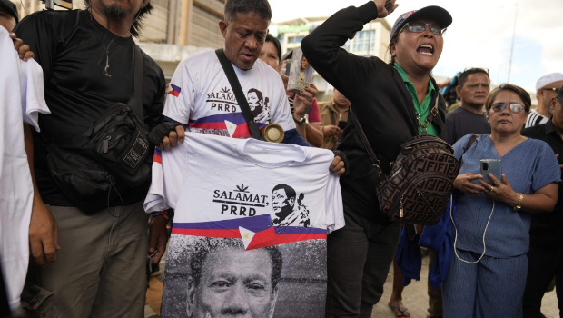 菲律宾前总统杜特尔特(Rodrigo Duterte)离开香港后,周二(11日)回国于马尼拉机场被捕。菲律宾ABS-CBN电视台、GMA新闻网最新报道,杜特尔特被拘捕后在菲律宾维拉莫空军基地的画面曝光,他质疑警方依国际刑事法院(ICC)逮捕令拘捕他的合法性。