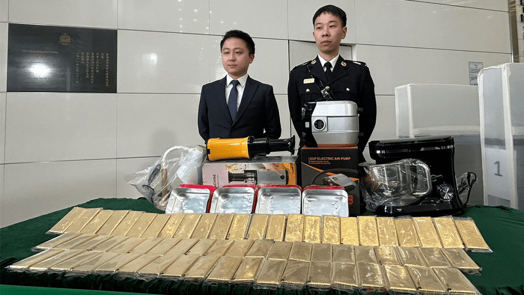 海关指不法之徒将黄金收藏于电器内,企图以集运形式蒙混出口,之后再利用复杂的包装手法以逃避海关人员侦查,其后又在铁盒内放置定位追踪器,希望可以容易定位包裹。