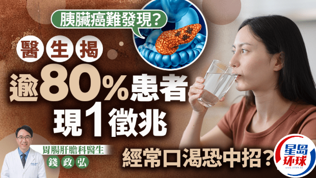 【胰脏癌征兆】胰脏癌因为难以及早发现,因而致死率高,故有“癌王”称号。有医生指出,胰脏癌其实并非无迹可寻,有逾80%胰脏癌患者在患病期间都会出现1种征兆,当中如发现自己经常口渴亦要格外留神!