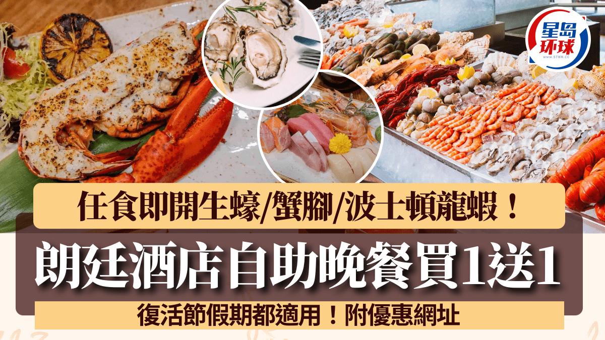 朗廷酒店自助餐买1送1!任食即开生蚝/蟹脚/龙虾
