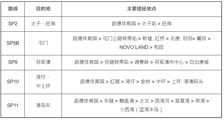 九巴加开6条特别路线,于活动结束后约15分钟由位于宋皇台道的上落客区(近启德青年运动场)开出。 6条路线包括..