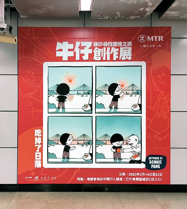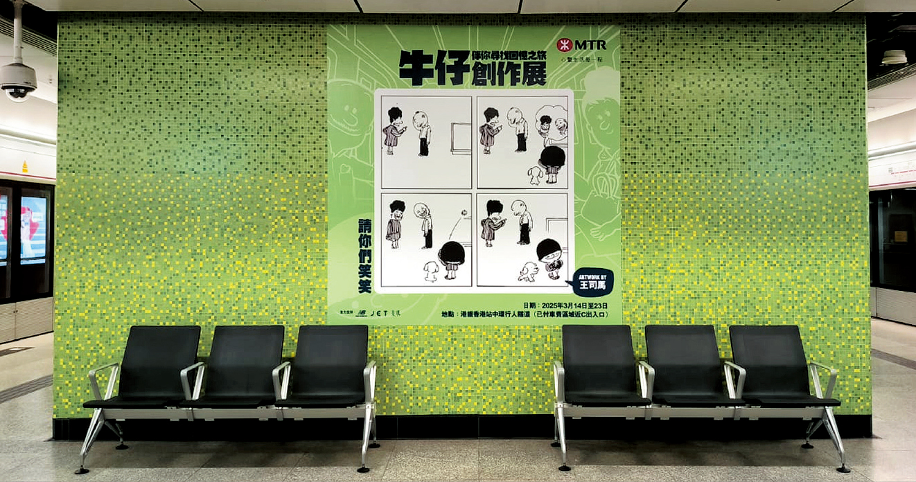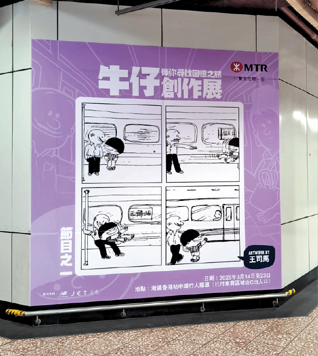 ▲《牛仔》大型四格漫画壁画率先在十个港铁车站登场,在铁路旅程中重现“牛仔”的趣事。