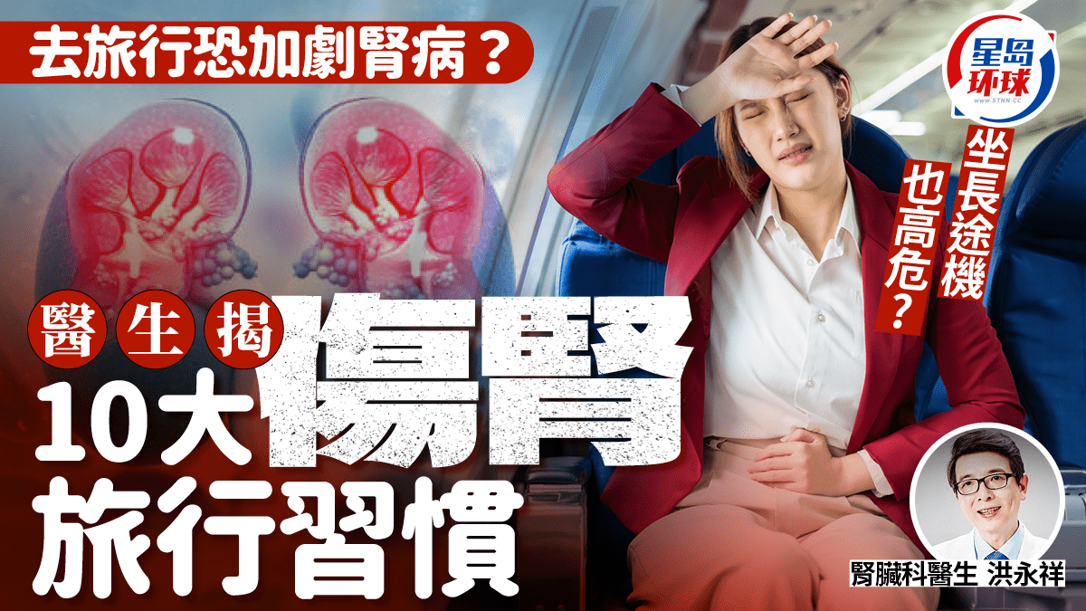 出门旅游本是开心事,原来当中藏有不少伤肾陷阱。有医生列出,出门旅行10大伤肾习惯排行榜,更警告肾病患者旅行时如不注意这些伤肾习惯,恐会令病情恶化至需要洗肾,当中搭长途机亦因为1个因素而榜上有名。