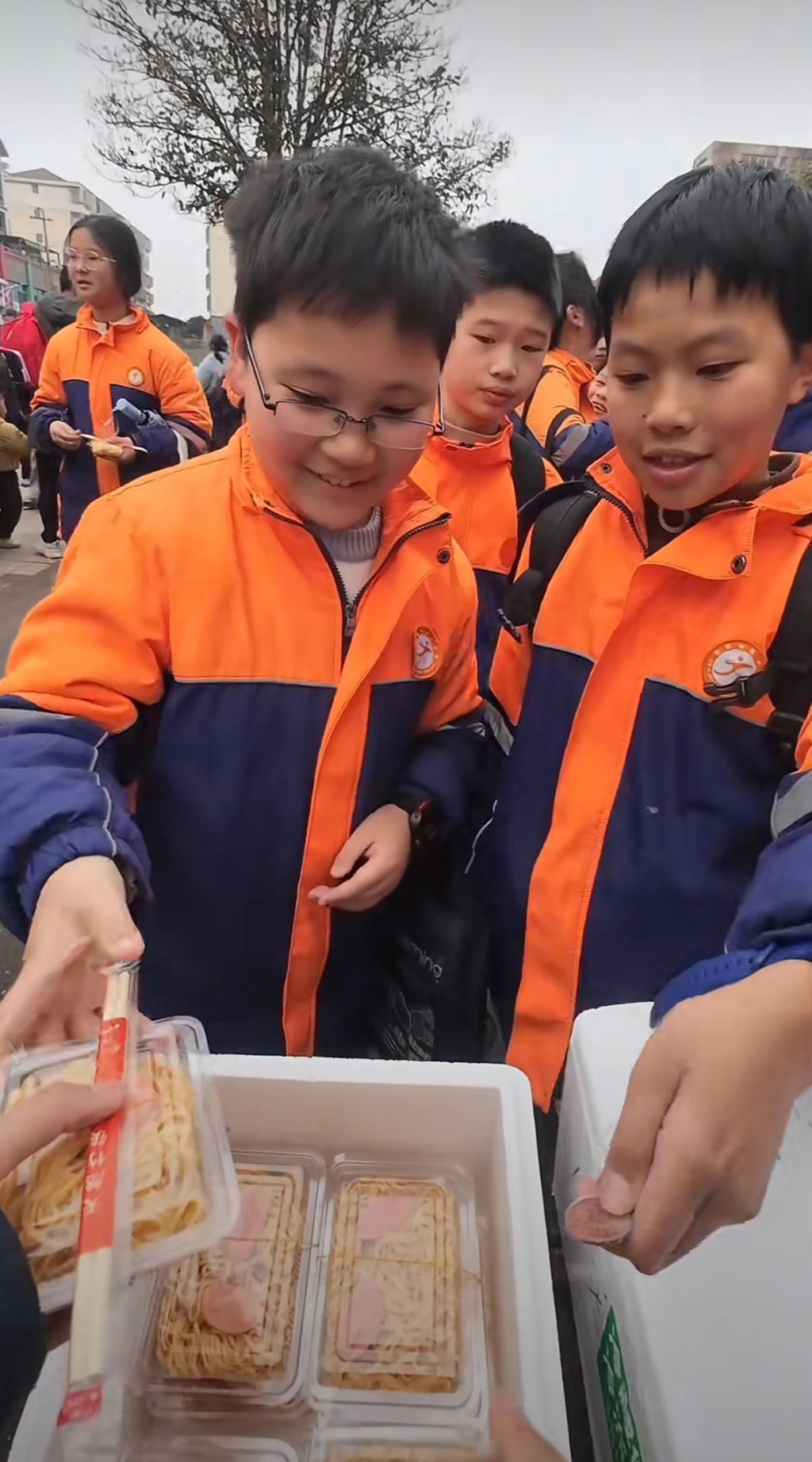 江西金溪市一所小学的学生们放学后,惊喜地在学校门口看到了一个熟悉的身影。“陈老师,你真的来了!”原来,这位男子正是他们曾经的老师小陈。小陈曾是这所学校的数学老师,因合同到期失业在家,在学生的鼓励下转行,在校门口卖火鸡面,每盒定价1元(人民币,下同)。