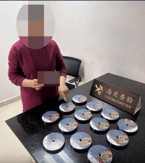 ▲港珠澳大桥海关从女子身上搜出156张《魔物猎人》游戏光碟。 海关发布