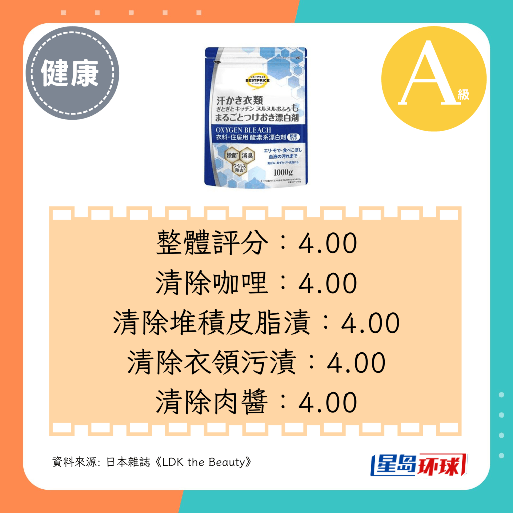 共同第3位(4.00分):CAINZ含氧漂白剂(过碳酸钠)(日圆¥598,约HK$31)