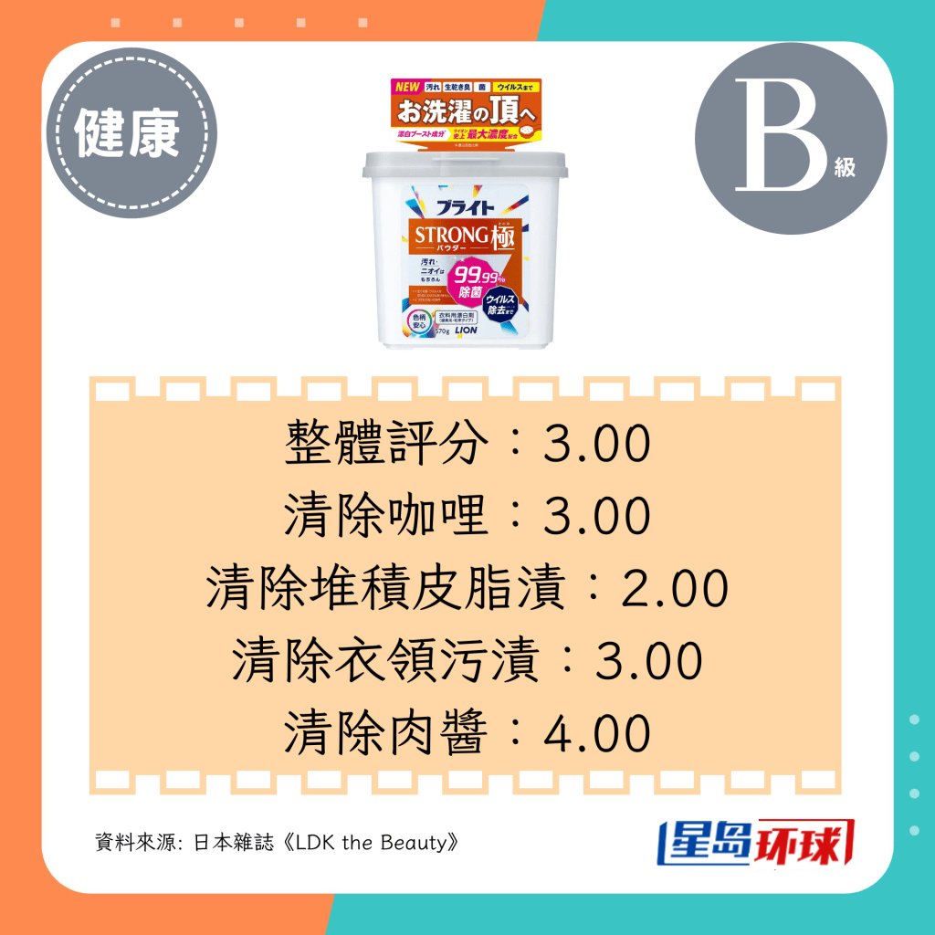 ▲第6位(3.00分):狮王Bright STRONG Extreme Powder(日圆¥1946,约HK$102)
