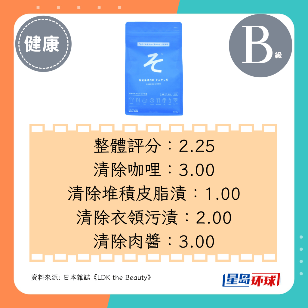 第7位(2.25分):木村石硷 家庭万用去渍洗衣清洁粉(日圆¥730,约HK$38)