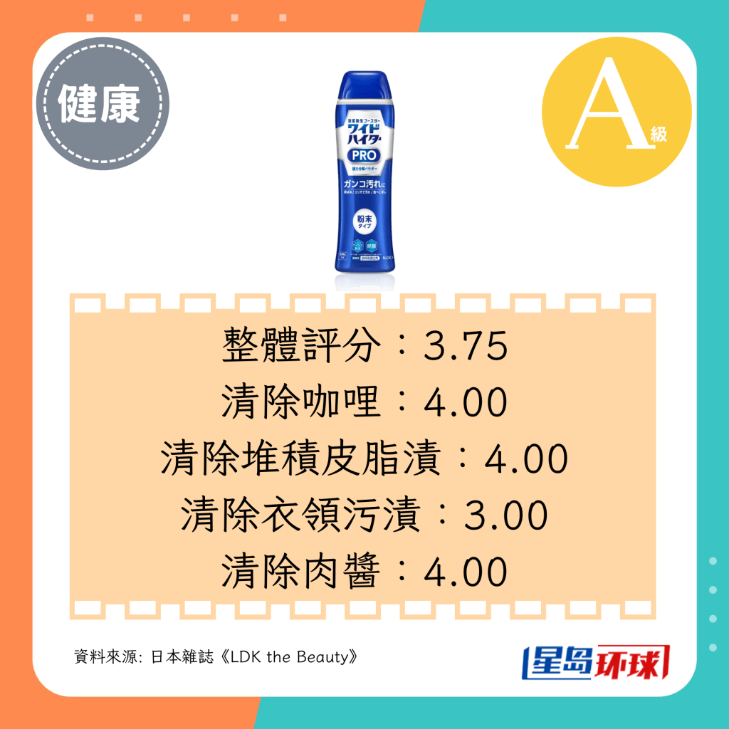 第5位(3.75分):花王PRO强力分解衣物漂白粉(日圆¥497,约HK$26)