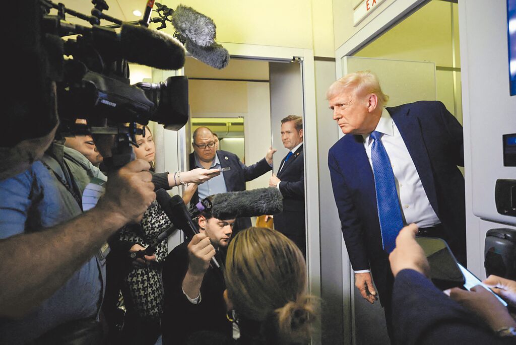 ▲美国总统特朗普计划于美东时间18日与俄罗斯总统普京通话,协商如何结束俄乌战争。图为特朗普16日在空军一号上接受媒体访问。(路透)