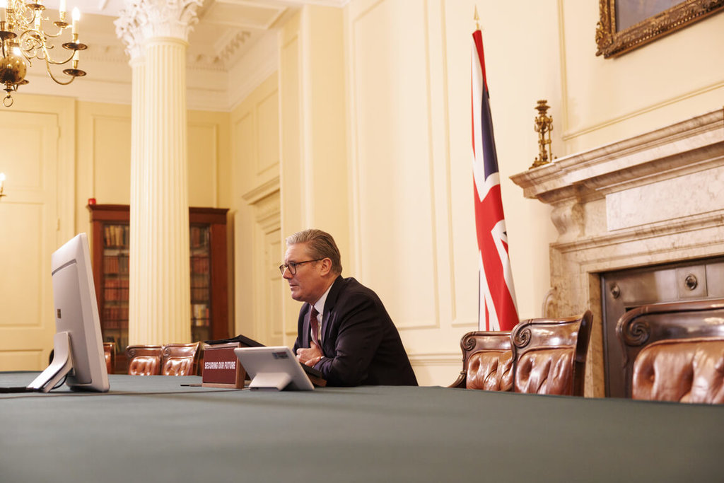 ▲首相斯塔默15日主持志愿者联盟视讯峰会。英国首相府