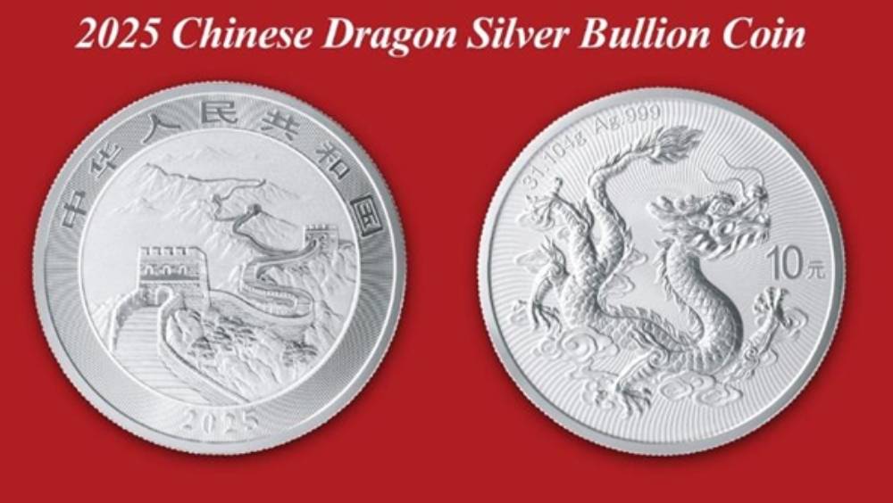 中国人民银行(央行)今(3月18日)天发行2025版中国龙银质纪念币,该银质纪念币为中华人民共和国法定货币。正面为长城图案,并刊国名、年号,背面图案为中国龙形象,辅以祥云图案组合设计。该枚银质纪念币,含纯银31.104克,面值10元(人民币,下同),最大发行量200万枚,将在内地各大商业银行发行。