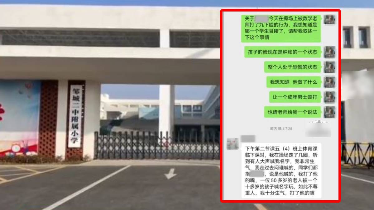 山东济宁有小学生,因为直呼老师姓名,激怒中年男教师,对学生连环掌嘴9下,还向学生家长直承“我打他嘴,他嘴贱”。 当地教育局表示,打肿学生脸的确过份,会依法处理。