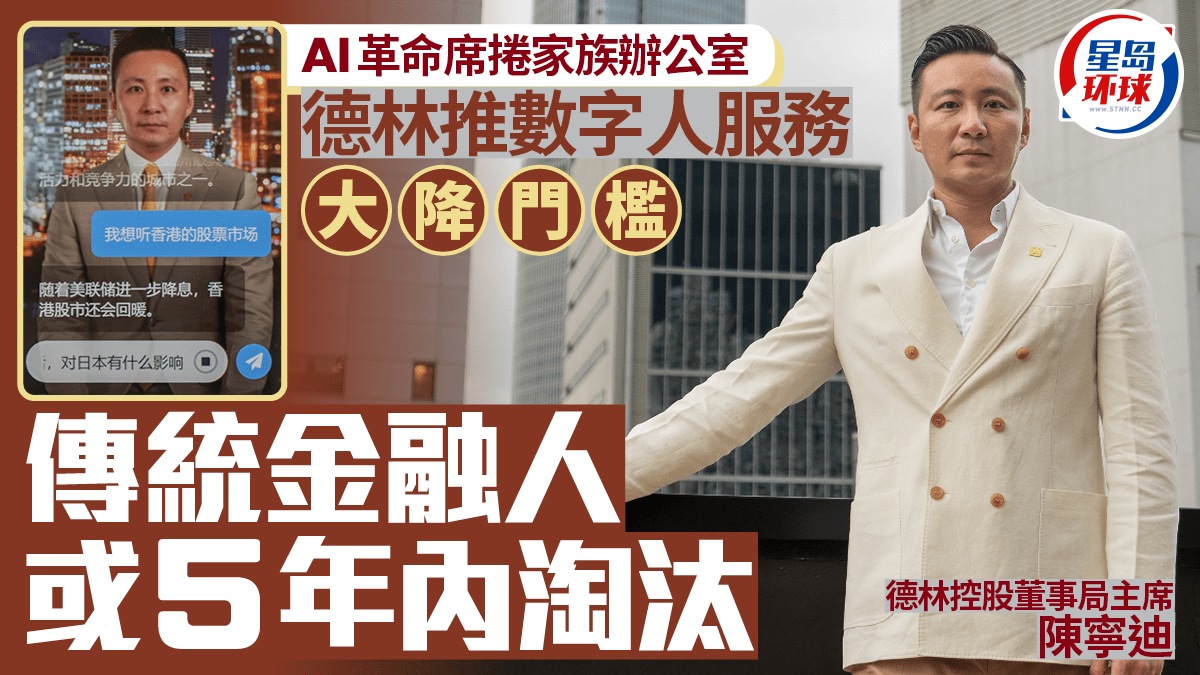 人工智能(AI)浪潮席卷全球,专为超高净值资产人士提供个人投资服务的家族办公室也开始数字化转型。 早年深耕家办业务的资产管理及投资服务平台德林控股(1709),最新推出AI项目突触科技(NeuralFin),提供人工智能数字人服务。 集团董事局主席陈宁迪接受《星岛头条》专访时更指,家办业务数字化降低接触门槛,普通投资者也能看得到,未来“AI家办是为每一个年轻人,都能拥有自己的家办”。