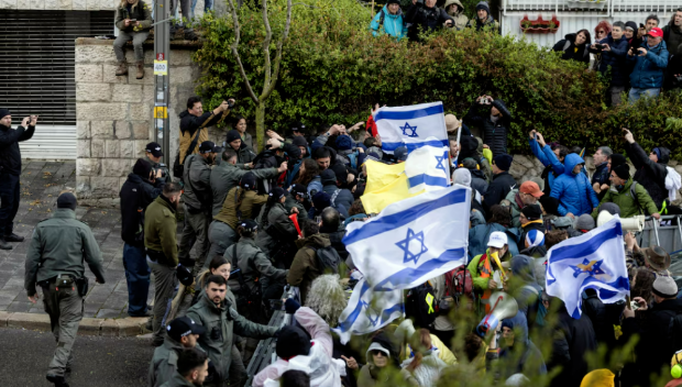 ▲当地时间3月20日,在总理官邸附近,警方与以色列民众发生冲突 图源:外媒报道配图