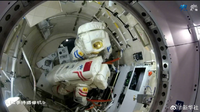 ▲神舟十九号航天员第三次出舱活动。 新华网