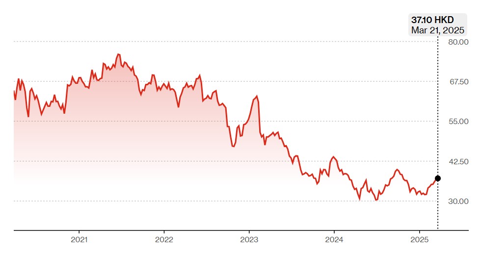 ▲领展过去5年股价 来源:彭博