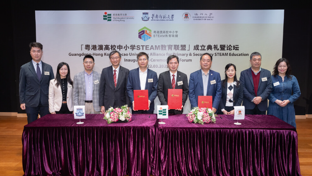 为促进粤港澳STEAM教育的发展,香港教育大学(教大)与华南师范大学(华南师大)及澳门大学(澳大)共同成立“粤港澳高校中小学STEAM教育联盟”,并于3月22日举办成立典礼暨论坛;活动吸引了超过180 名来自粤港澳的STEAM教育专家学者共同见证重要时刻。