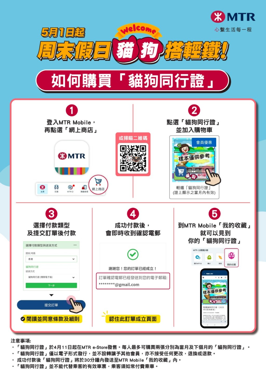 在“MTR Mobile”应用程序申请购买“猫狗同行证”