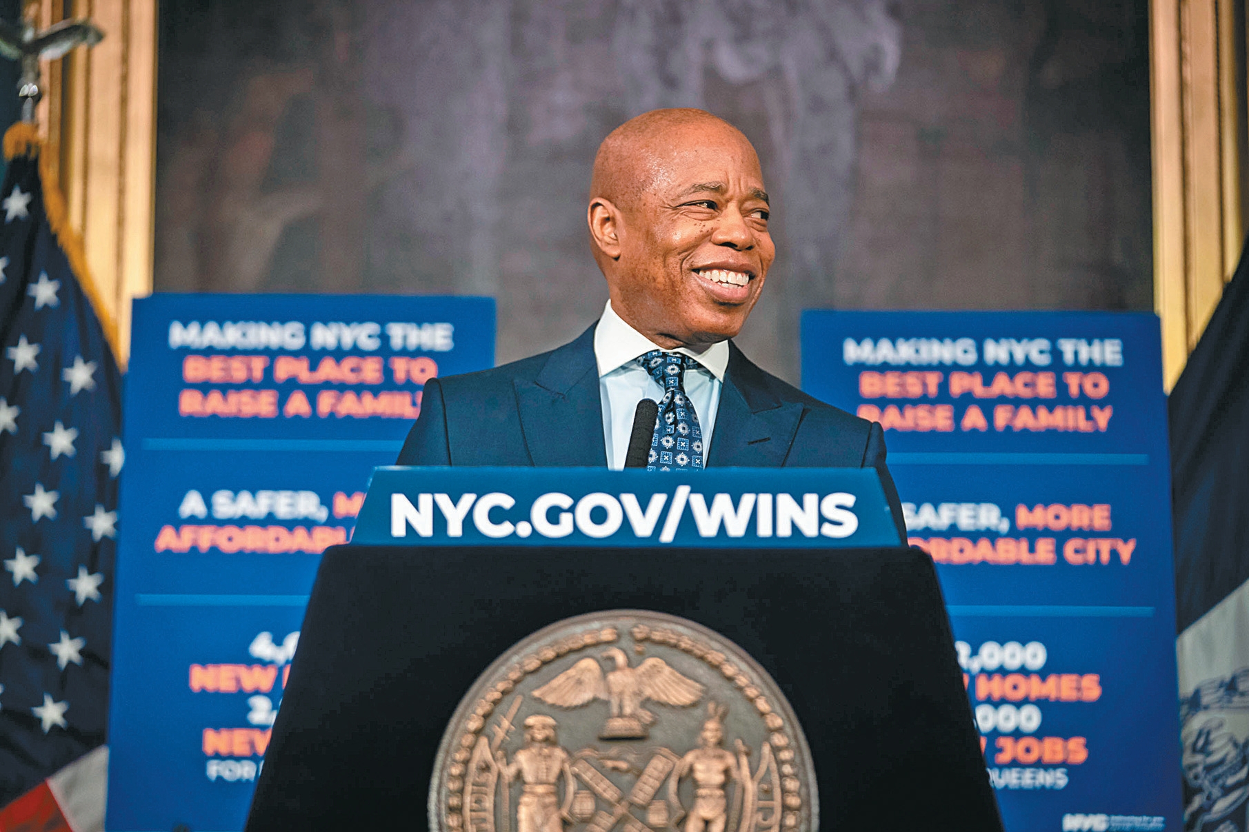 ▲亚当斯加入其他候选人的阵营向柯谟开火。纽约市长办公室图片