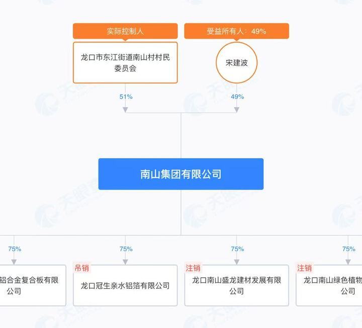 值得一提的是,南山铝业国际脱胎于山东南山铝业,后者是中国铝业全产业链龙头,业务覆盖热电、氧化铝、电解铝及高端铝材,隶属于年营收超1700亿元的南山集团。目前,南山集团名由龙口市东江街道南山村村民村委会持股51%,宋建波持股49%。