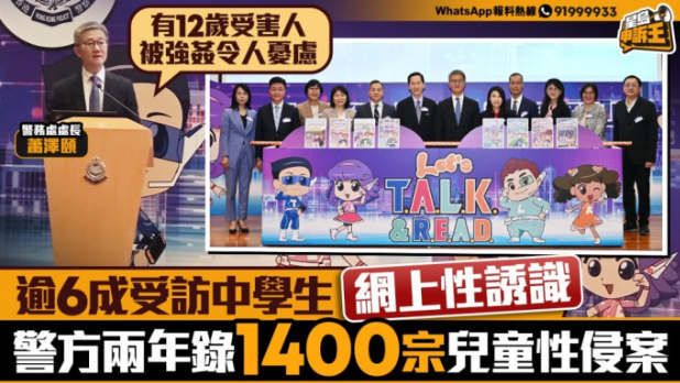青少年及儿童要慎防堕入网络性诱骗陷阱。警务处公布最新“网上性诱识”问卷调查,显示逾六成受访中学生曾遭遇网上性诱识,而过去两年录得近1400宗侵害儿童性罪行案件,警务处处长萧泽颐指有12岁受害人被性侵,情况令人堪忧,强调警方需全方位打造更安全网络环境。