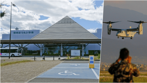 另外,在日本时间下午3时01分(北京时间下午2时01分),美军一架鱼鹰运输直升机在长野县松本市的松本机场紧急降落,跑道关闭。 3时30分左右,另一架鱼鹰也在松本机场降落。 第二架鱼鹰不久随即起飞离开,但第一架鱼鹰直到下午5时30分仍留在机场。