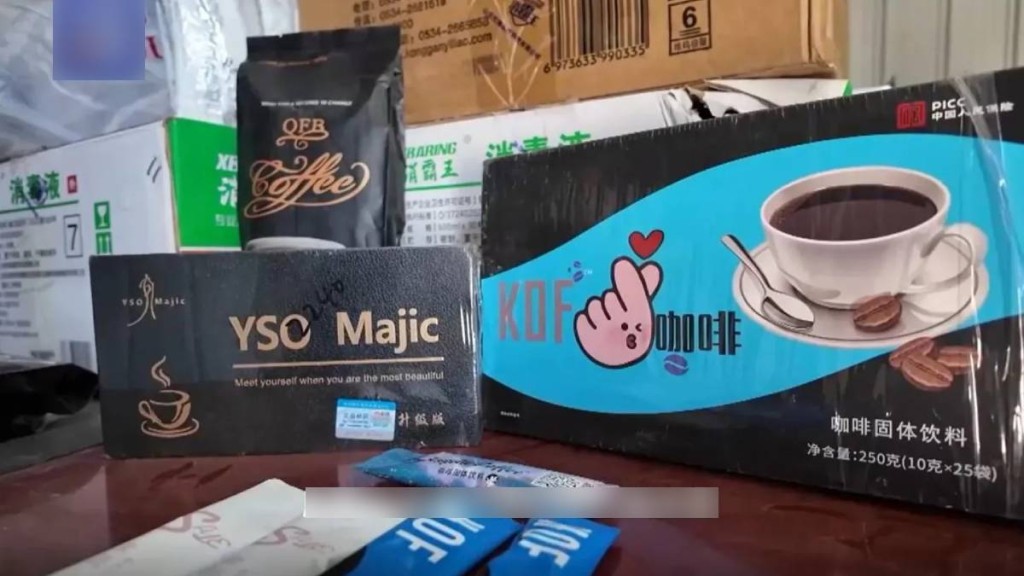 ▲兰州警方破获一个售卖有毒“减肥咖啡”的集团。央视