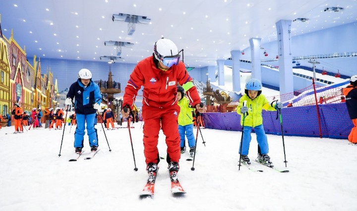滑雪区域设有适合零基础的单板练习道、双板练习道,中级道、2条高级道等 5 条不同难度的雪道; 当中中级道与双板练习道拥有长达460米的超长室内高山滑雪雪道,而双板练习道(小熊道)- 雪道开阔,宽度约 50 米,长度约 76 米,坡度约 8°,整体滑行速度较缓,适合零基础滑雪者,小朋友可以在这里大胆尝试练习。