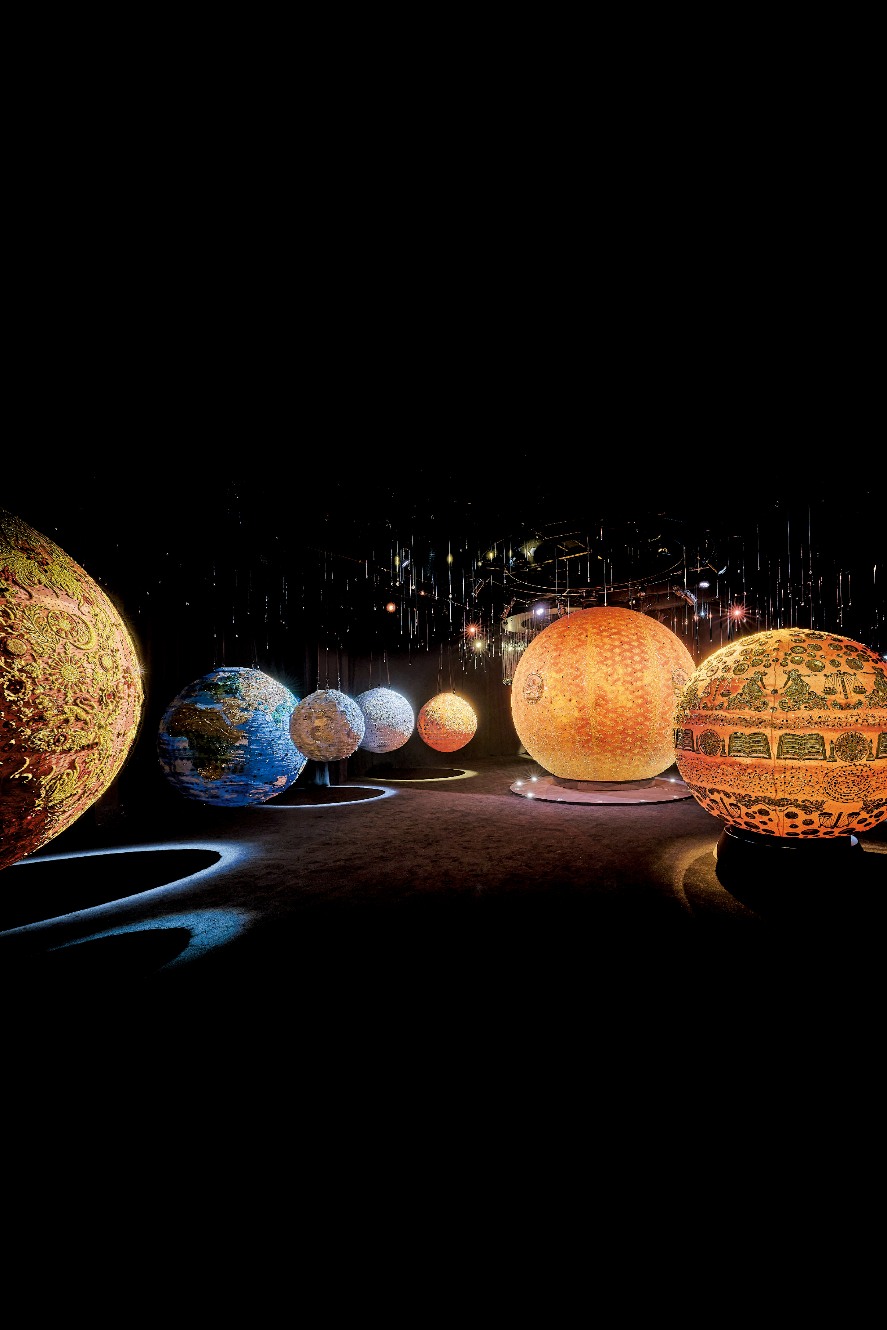 多位跨地域艺术名家,以极具个人色彩的独特手法,呈献一场人类与艺术、宇宙与大自然的感官交流:来自巴基斯坦的艺术家Sara Shakeel,以水晶宝石交织宇宙奥秘,带来“ArtisTree Selects: The Jewel System”展览,搜罗390万件水晶,融合传统手工纺织技术,以光线、水晶及刺绣展现太阳系奇幻星象;入围透纳奖的Monster Chetwynd献上贵为巴塞尔艺术展香港展会“艺聚空间”(Encounters)唯一场外展品——“Lanternfly Ballet”,致敬香港灵动的生态脉络。