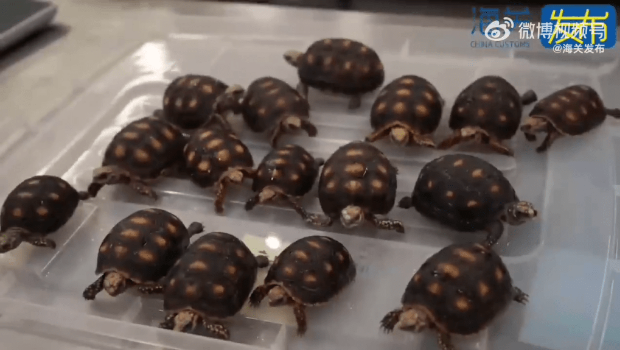 近日,莲塘海关查获进境旅客人身绑藏濒危动物南美陆龟28只。