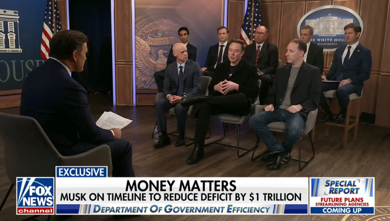 ▲马斯克和7名DOGE团队成员“罕见”接受福克斯新闻网专访。图自美媒