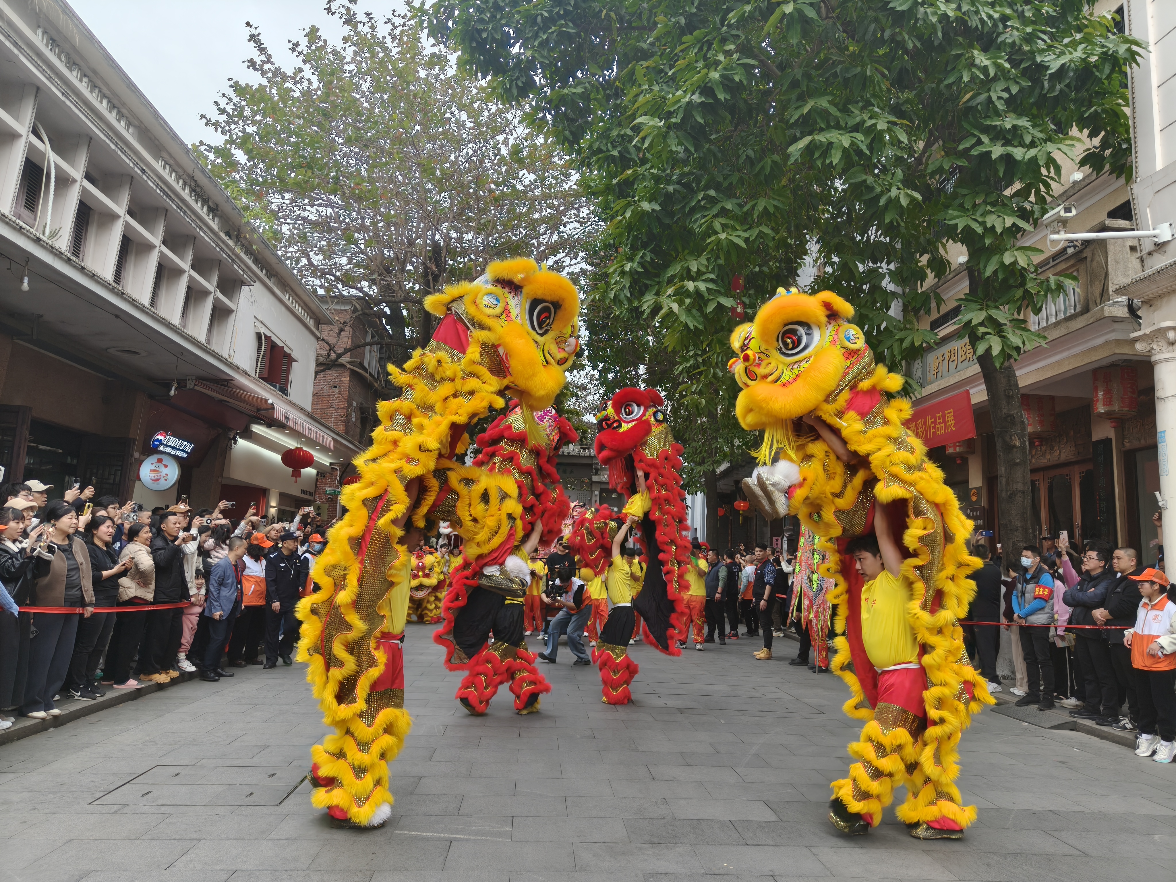 ▲春节期间,古城内的舞狮表演。